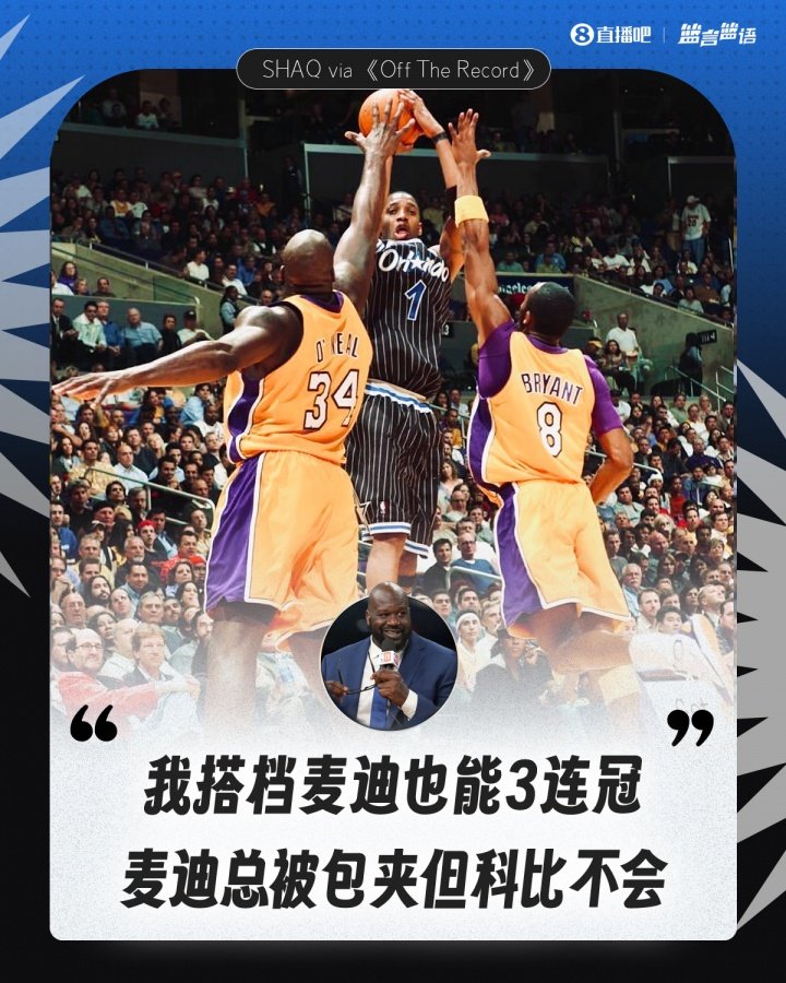 相关链接→麦迪:难道给我个奥尼尔我不能带湖人夺冠?我只是从未得到机会