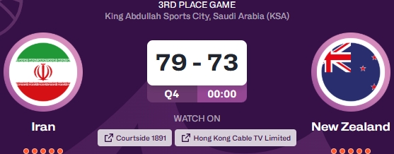 08月17日讯 男篮亚洲杯铜牌赛,伊朗79-73战胜新西兰,获得本届亚洲杯季军。