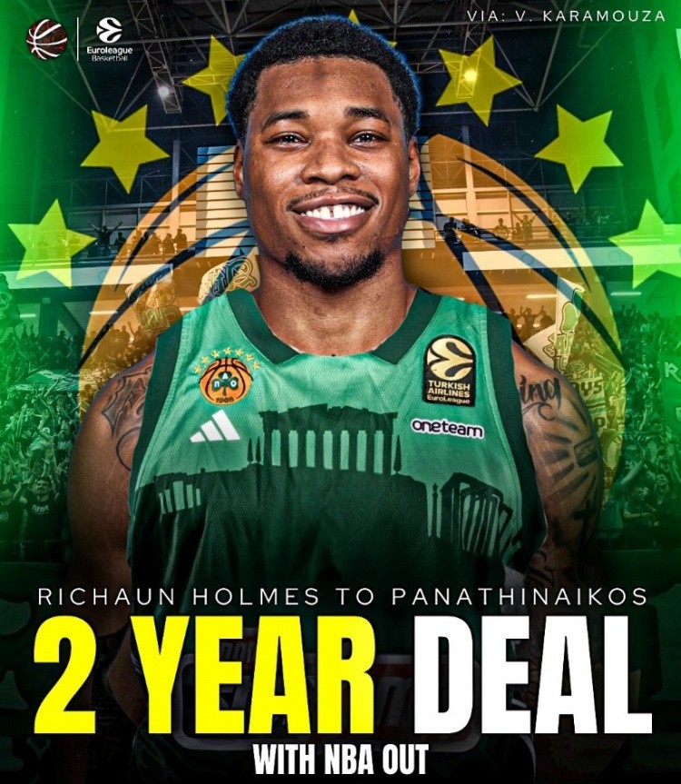 8月10日讯 据欧媒TalkBasket报道,今天,帕纳辛纳科斯已经官宣签下了霍姆斯。这是一份1+1合同,霍姆斯拥有第二年的球员选项,这意味着他能在26年夏天成为自由球员。