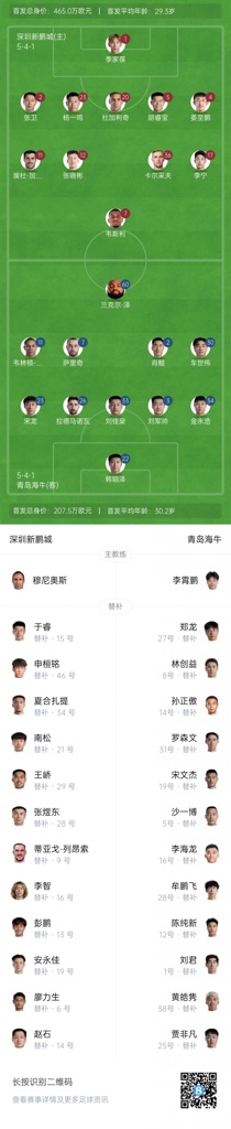 07月19日讯 今晚19:35中超第17轮,深圳新鹏城vs青岛海牛。赛前首发阵容已经公布。