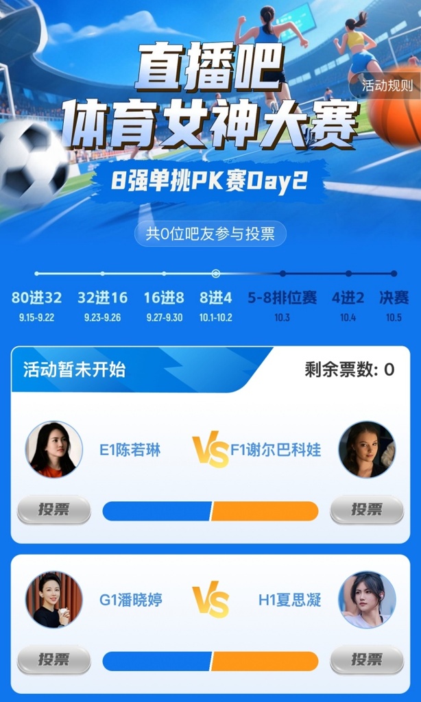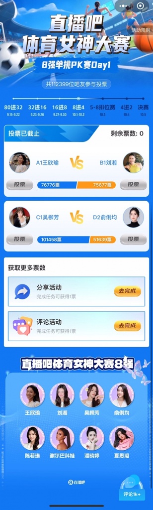 2025年『体育女神大赛』昨日结束了8强单挑PK赛Day1的争夺,具体赛果如下: